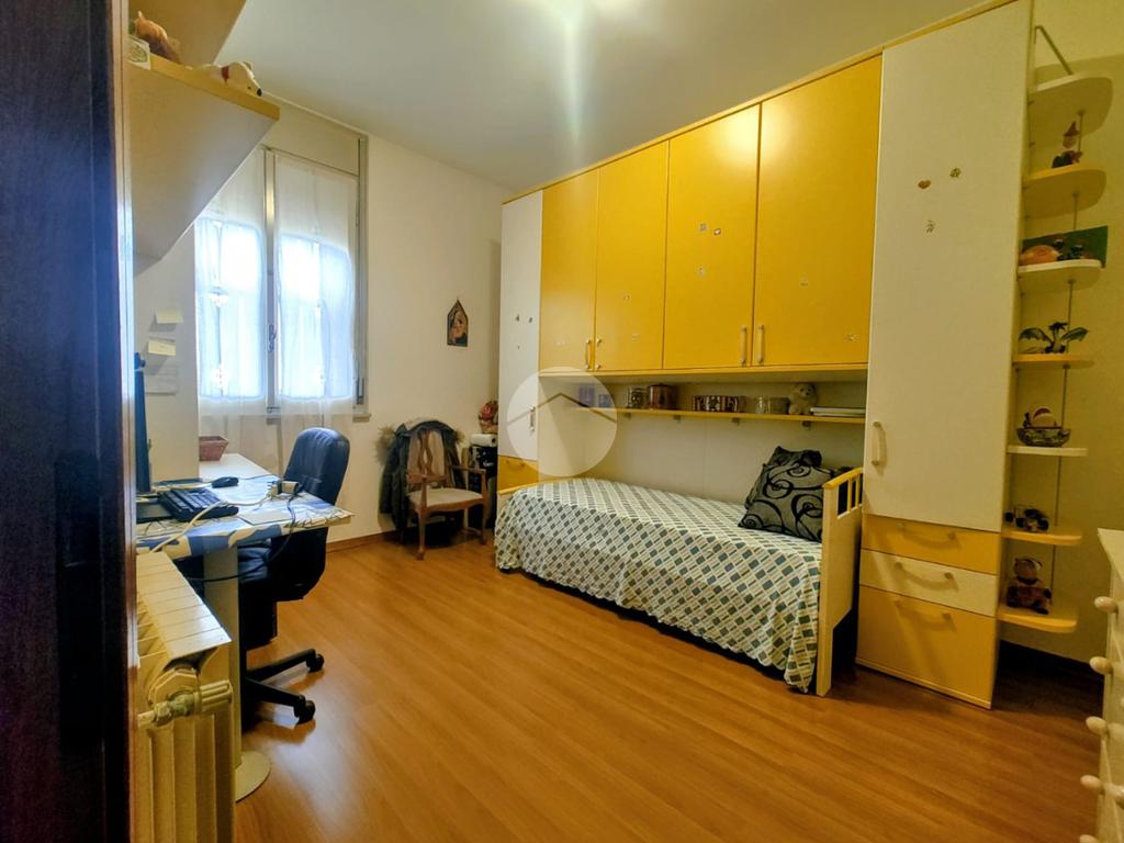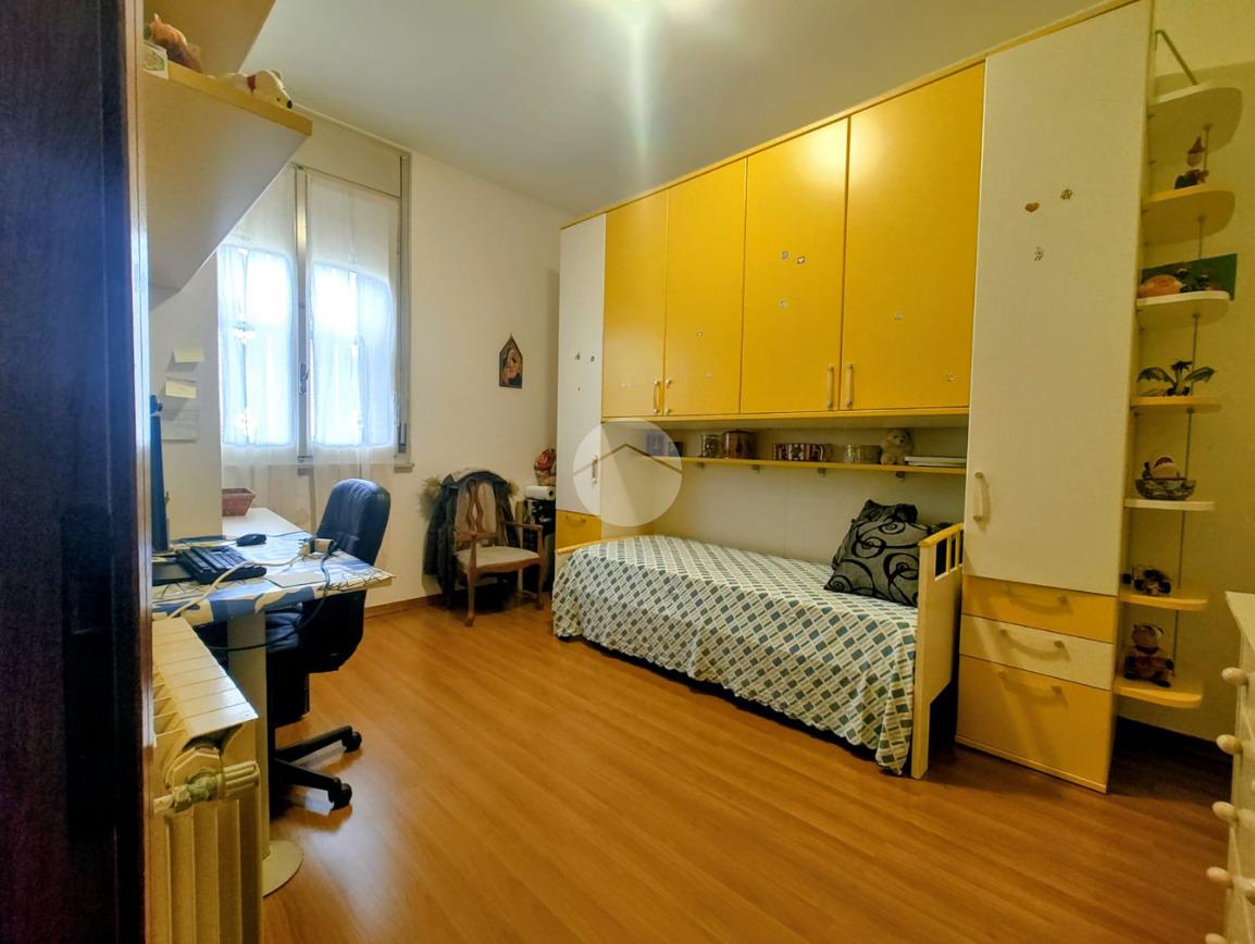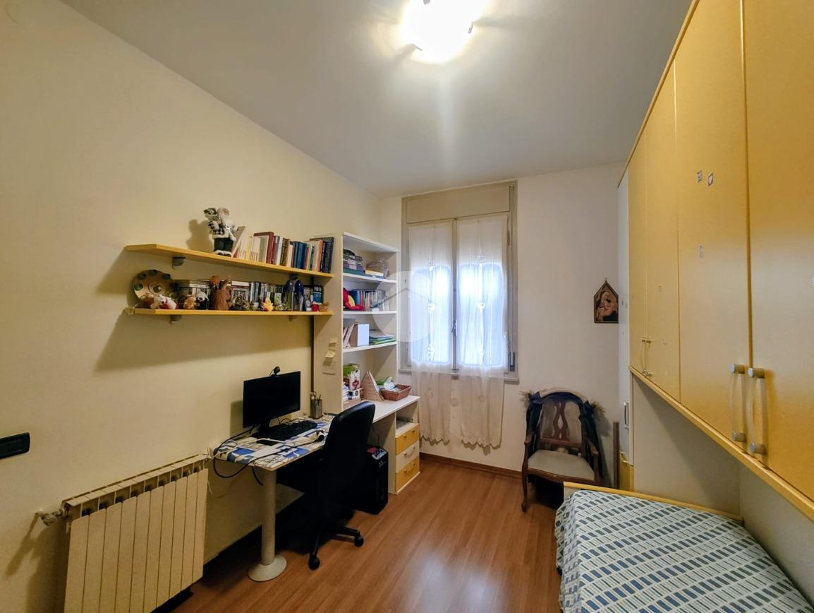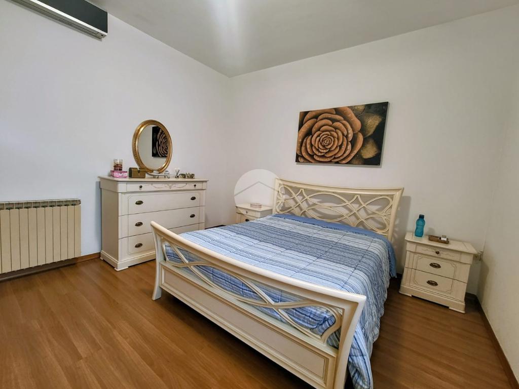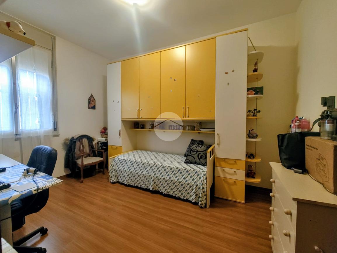 La zona notte offre un bagno finestrato con box doccia, una spaziosa camera matrimoniale e una cameretta, ideali per famiglie o ospiti.